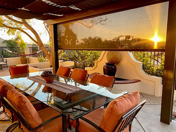 Sun Control:  Solar shades block up to 90% of glare, keeping the inside cool and protecting your furnishings from UV damage.